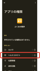 ■ヘルスコネクトへの許可画面が表示されない場合