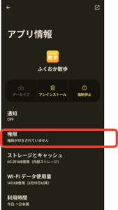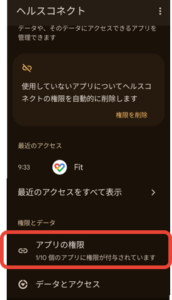■ヘルスコネクトは最新版インストール済みだが、ヘルスコネクトへの許可画面が表示されない場合(アプリ情報からの設定)