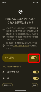 ⑨許可後、「Fitとヘルスコネクトを同期する」がONになっていることを確認してください。