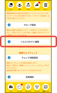 ① 「メニュー」>「ヘルスコネクト連携」をタップしてください。
