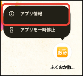 ①スマホのホーム画面の「ふくおか散歩」のアプリアイコンを長押し。