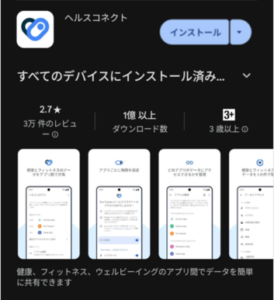 お使いの端末にヘルスコネクトがインストールされていない、または更新が必要です。→Playストアにてヘルスコネクトを確認し、必要に応じてインストール・更新をお願いします。