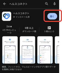 ②検索欄で、「ヘルスコネクト」と検索し、【開く】をタップ