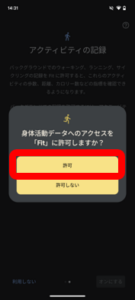 ①「1.身体活動へのアクセス」の「許可する」ボタンをタップし、身体活動データへのアクセスを許可してください。